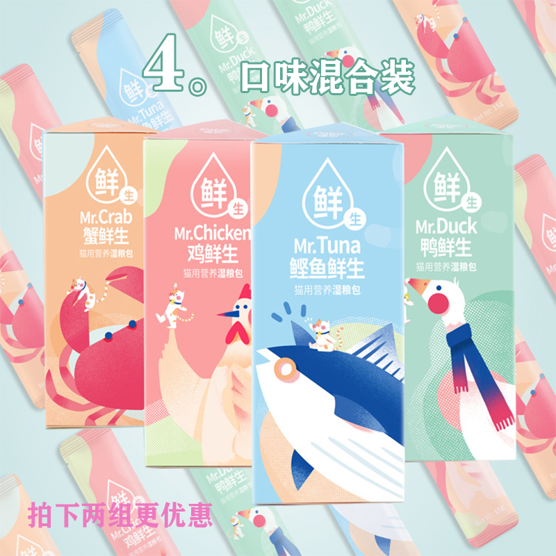 Duck fresh raw wet food package (15g*24) free 6 chicken fresh raw wet food package (15g*24) free 6 crab fresh raw wet food package (15g*24) free 6 bonito fresh raw wet food
