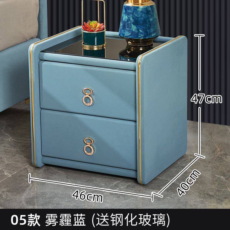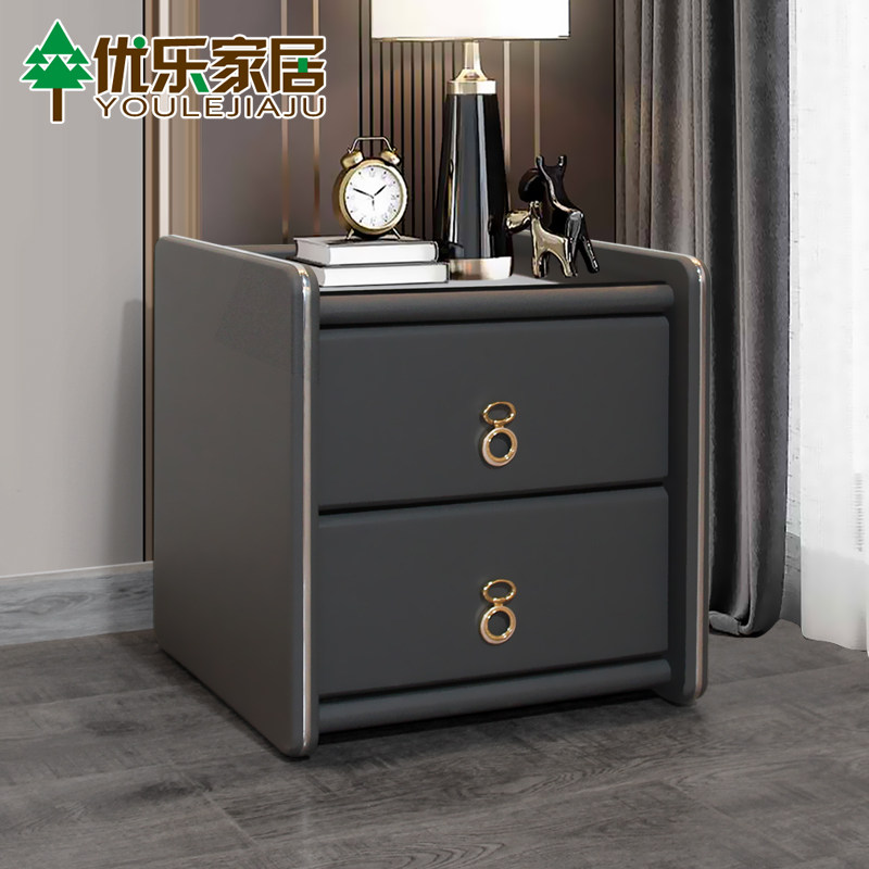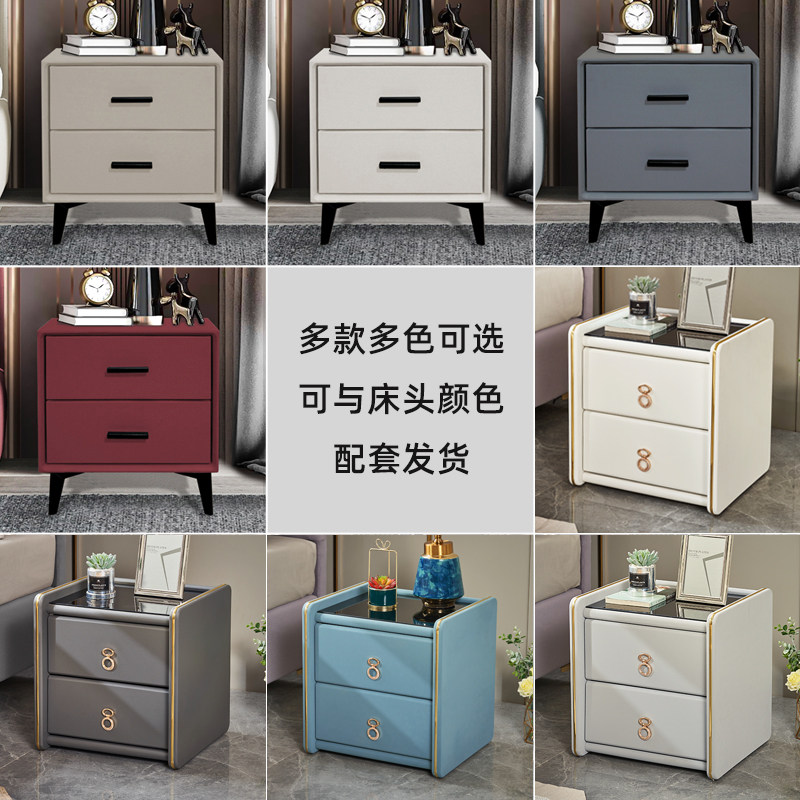 Solid wood bed head cabinet Nordic ins wind minimalist modern light lavish bedroom containing bedside cabinet Easy containing cabinet leather art
