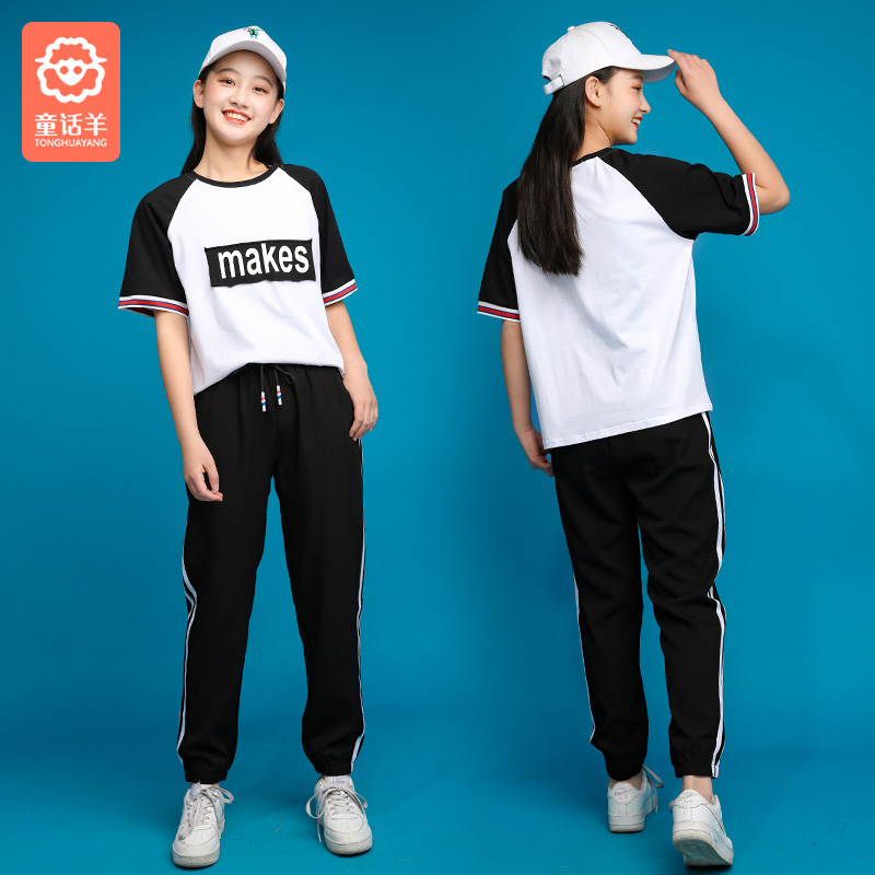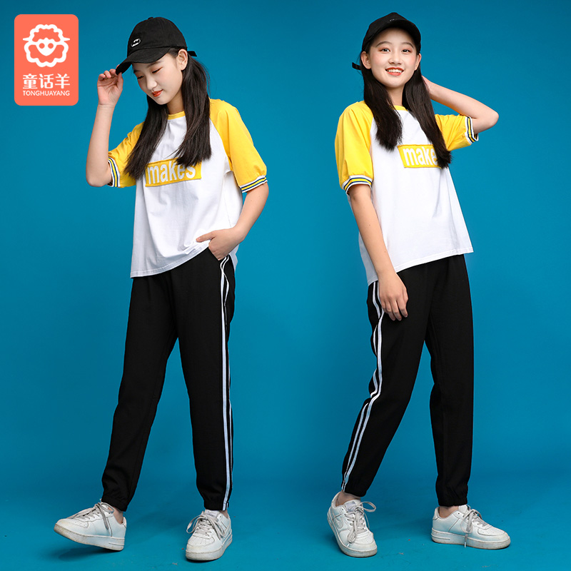 Black and white cotton T-shirt Black anti-mosquito cool pants Yellow and white cotton T-shirt Black anti-mosquito cool pants Yellow and blue cotton T-shirt Black anti-mosquito cool pants Blue and white cotton T-shirt Black anti-mosquito cool pants