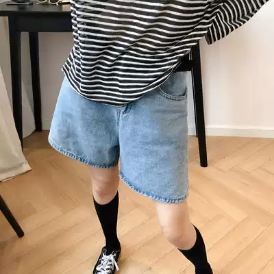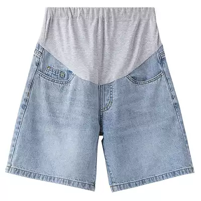 Pregnant women's shorts summer thin fashion pants summer wear loose blue wide leg pants denim five-point pants tide mom