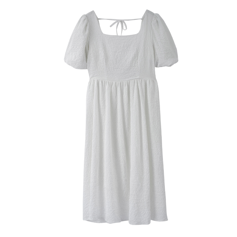 Ai Qiangwei square collar pleated dress with puff sleeves women's backless pink long skirt boudoir honey dress 2022 summer skirt