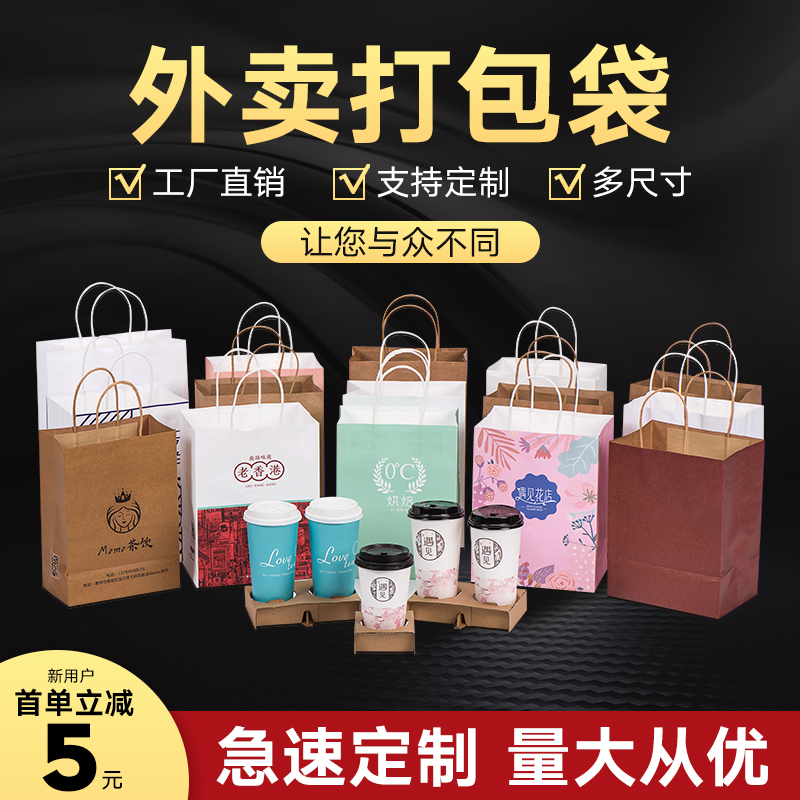 Kraft Paper Bag End Afternoon Handbag Customised Takeaway Milk Tea Packing Bag Baking Packing Bag Gift Bags Subimprint Logo