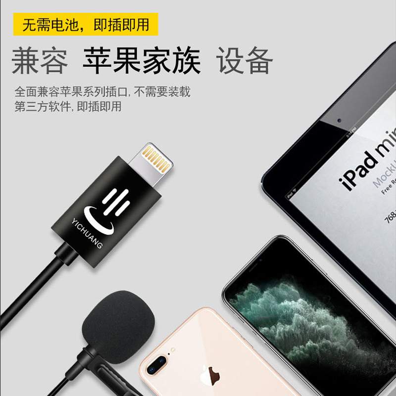 Collar Clip Microphone Apple Phone Jack Capacitive Mini Mic Microphone Game Anchor Live dedicated cable chest Mac Noise Reduction Professional 7p Recording Home Interface 8p Voice film External