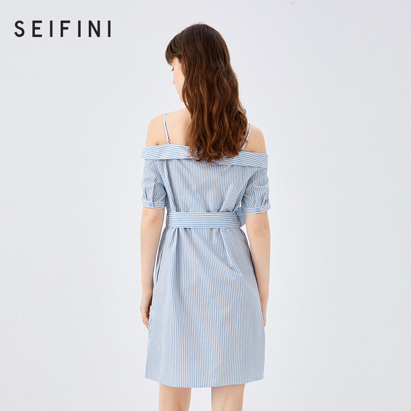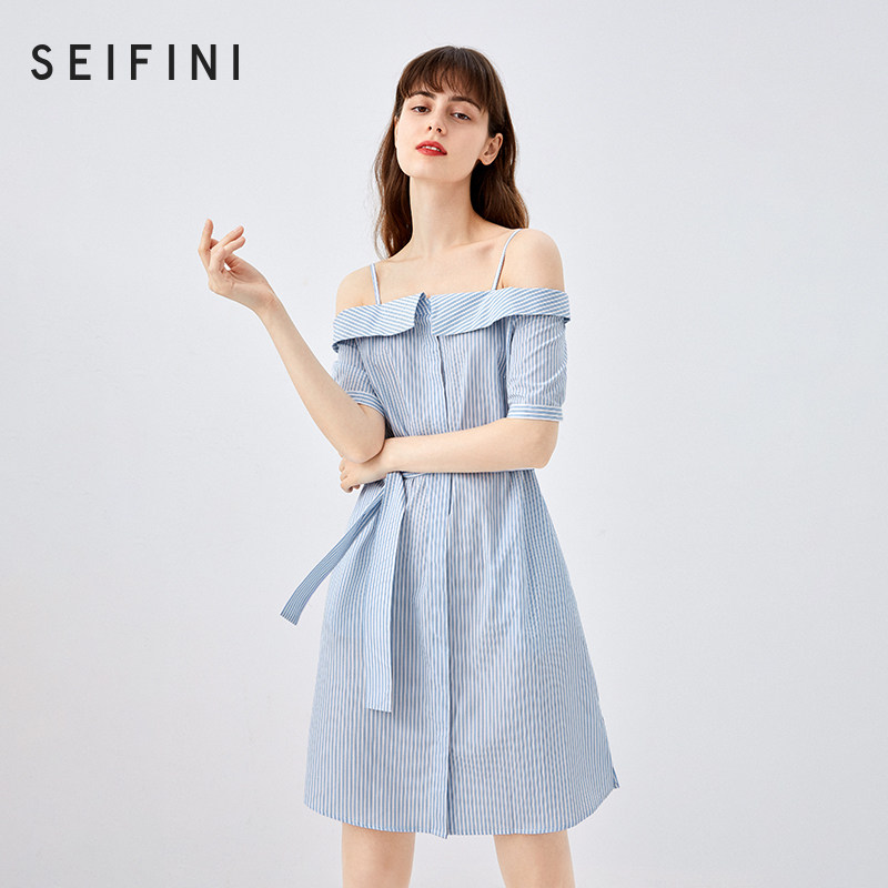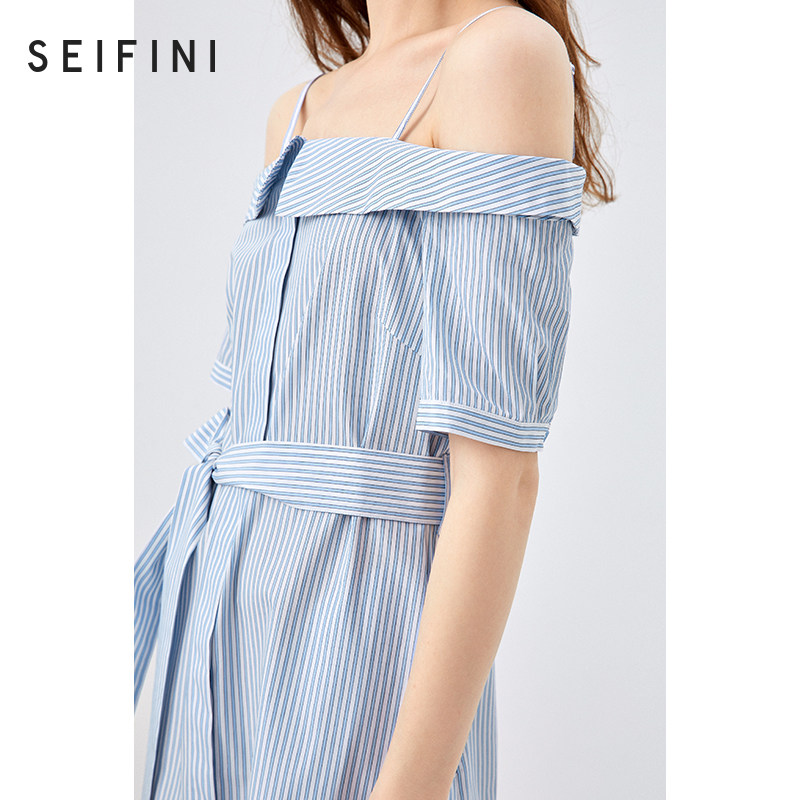 Poetry Verle skirts 2021 new summers Elegant Wind Dew Shoulder high waist collection Waist Temperament Striped Harness for women