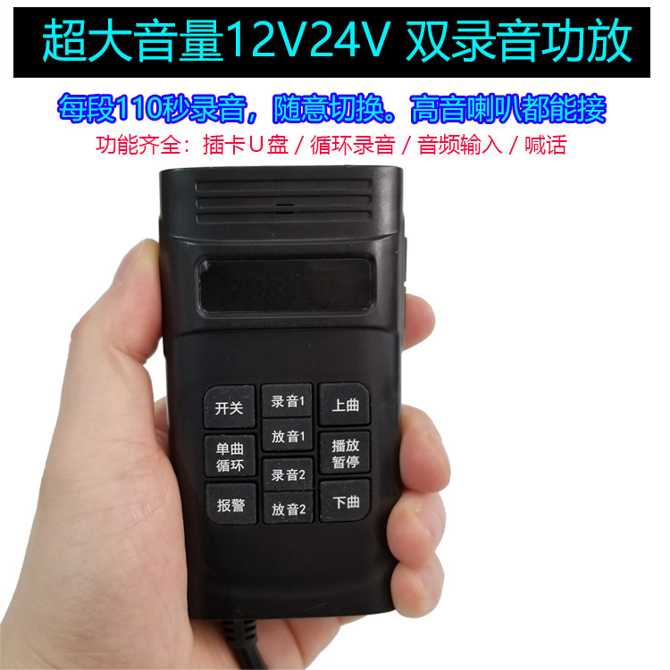 Dual recording high-power car advertising loudspeaker 12V24V recording shouting and selling horn plug-in card to connect to mobile phone