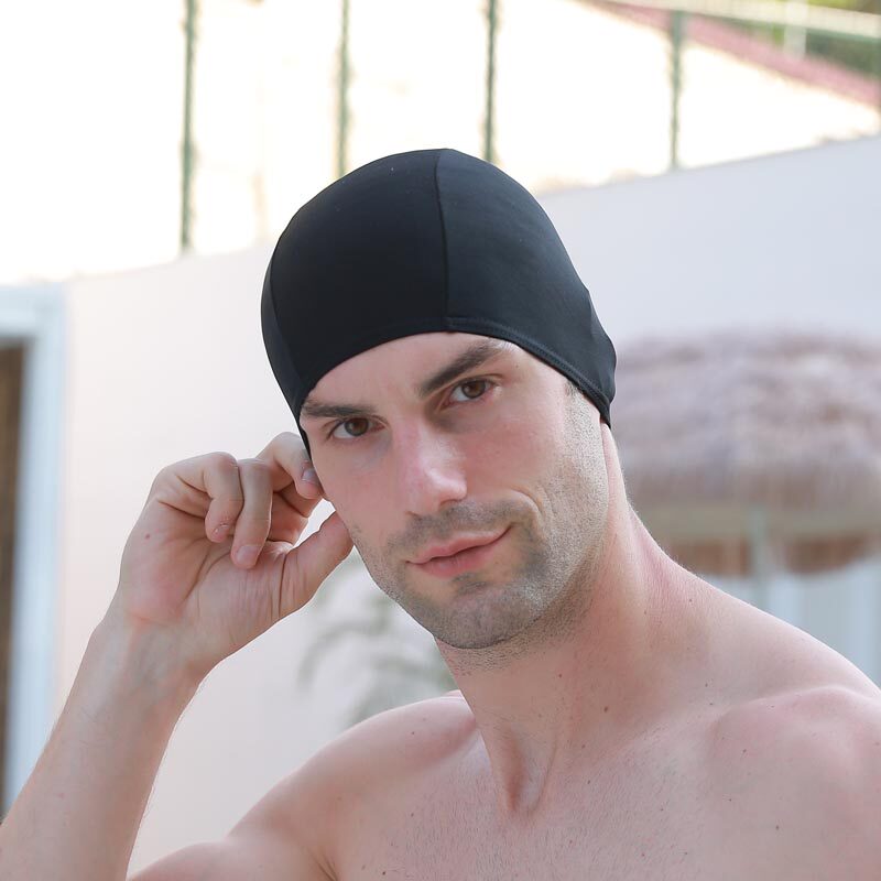 Men's and women's swimming caps Black fabric nylon swimming caps White printed 18 elastic stretch non-le head adult swimming pool