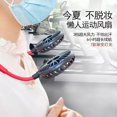 Hang neck fan small portable silent USB charging wind force folding Sports Office 3 gear headphone fan