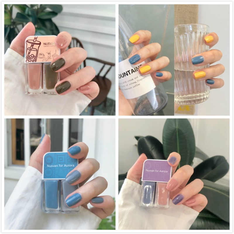 Nusvan Bicolor Nail Polish Milk Tea Series Morandi Speed Dry Fog Surface Exfoliable Ripping Water Two Colors