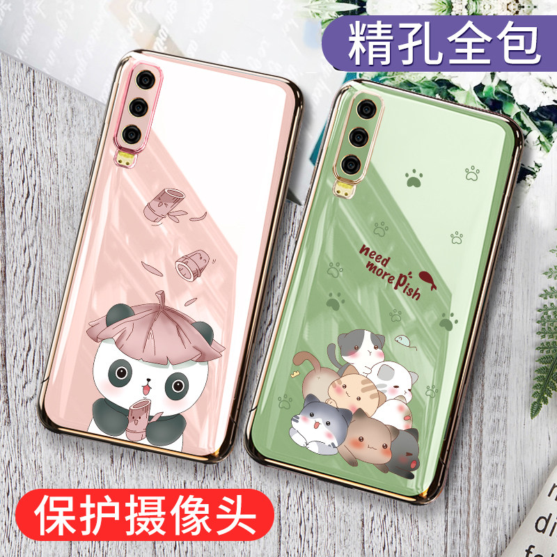 Applicable Huawei p30 mobile phone protection shell female p30pro fine hole full package protective sleeve p20 camera protection anti-fall p20pro electroplating mesh red cute panda ultra-thin grandma grey soft shell