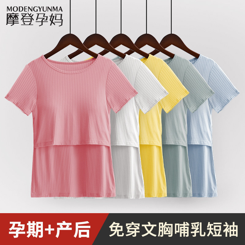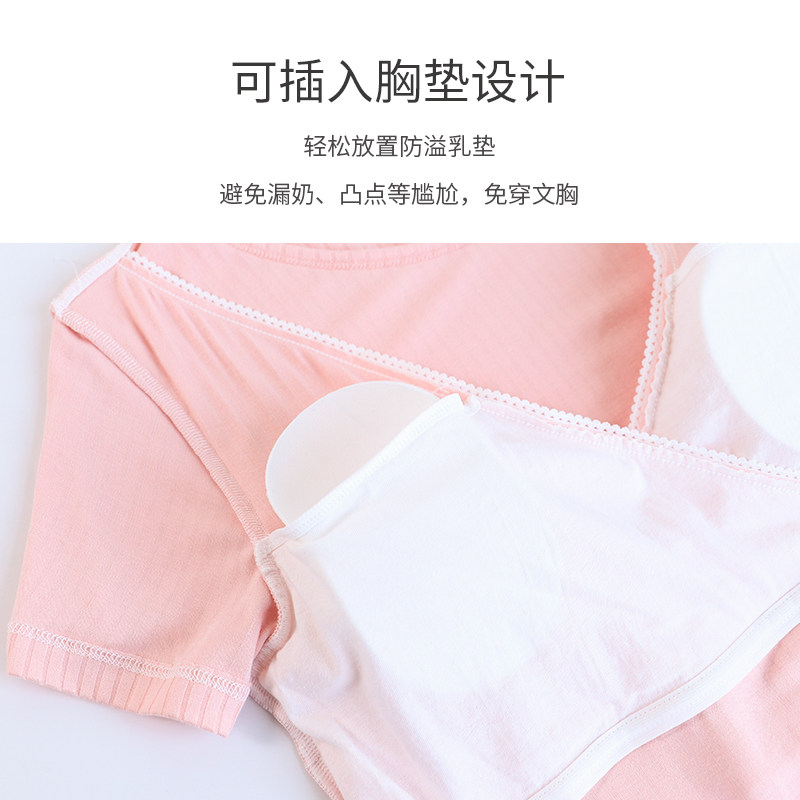 Nursing top Short sleeve Home T-shirt Summer base coat Breast feeding free bra Thin nursing dress with chest pad