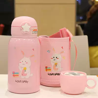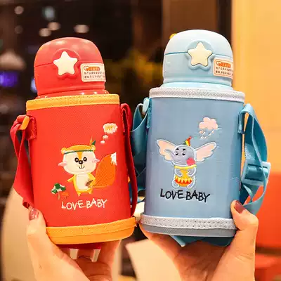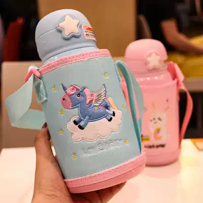Net red water cup Korean version of the large-capacity double cover 316 stainless steel thermos cup Straw cup leak-proof children's water cup student