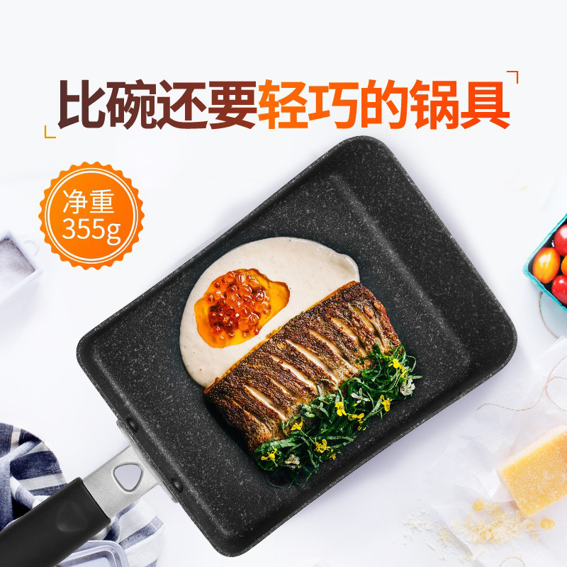 Cooking emperor Japanese-style Yuzi burning square mini non-stick pan thick egg burning small frying pan fried eggs home flat breakfast pan
