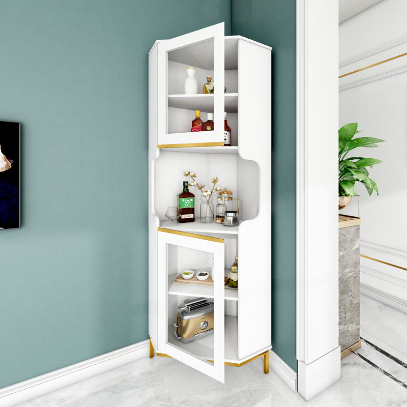 Light luxury triangle cabinet storage corner glass door storage corner cabinet Nordic modern minimalist living room wall side cabinet