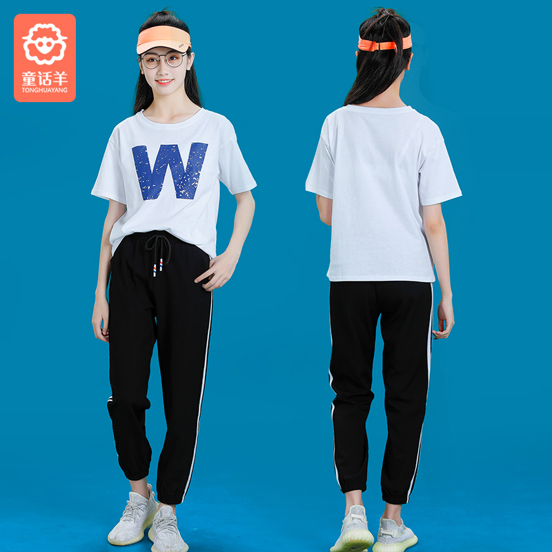 Cotton green T-shirt Black cotton elastic pants Cotton white T-shirt Black cotton elastic pants Cotton white T-shirt Black bulletproof mosquito pants Cotton green T-shirt Black bulletproof mosquito