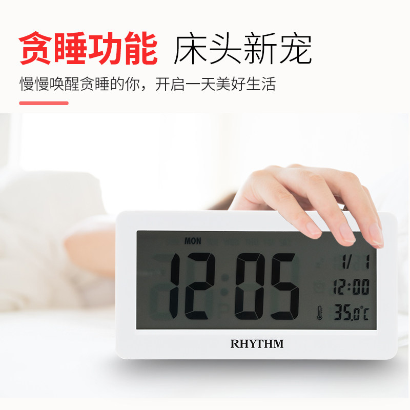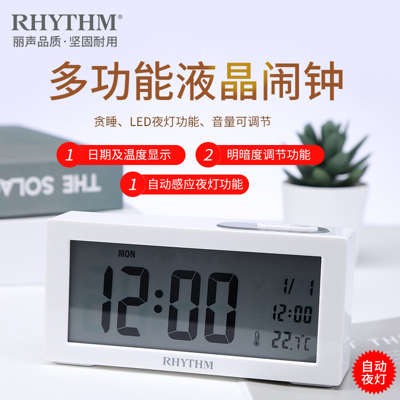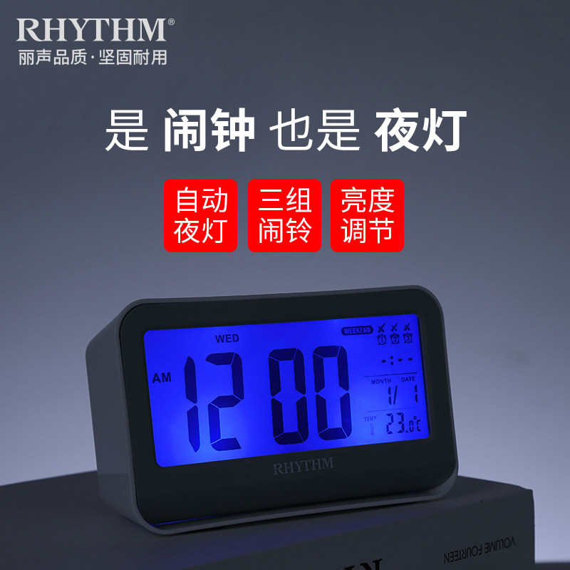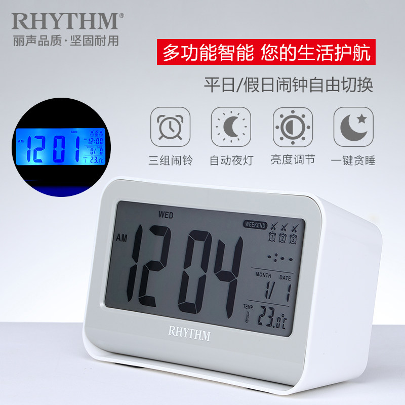 rhythm Japan Li Sheng electronic alarm clock LCD bedroom multi-function night light snooze small alarm clock Student bed
