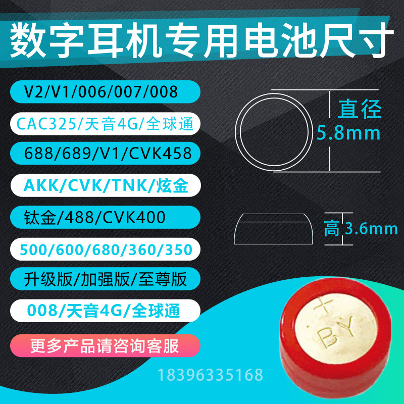 007 digital headphone battery V1 V2 688 invisible earplug 001TNK special CVK458 325 button for electronic
