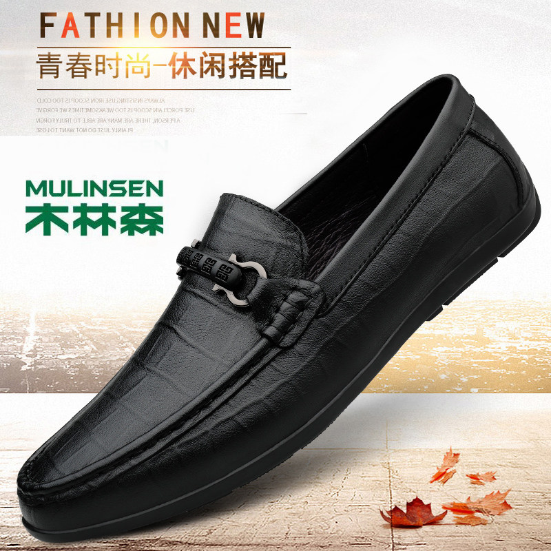 Mulinsen beanie shoes men's leather 2022 new men's casual shoes men's leather shoes soft-soled business men's shoes summer