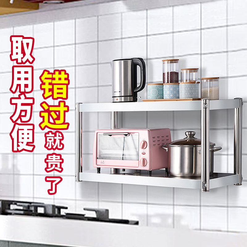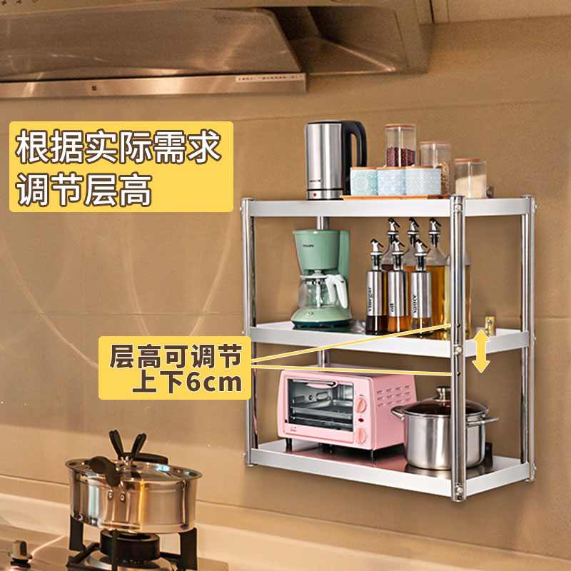 Kitchen shelf Stainless steel wall-mounted wall-mounted three-layer storage hanger Microwave oven seasoning wall shelf 2