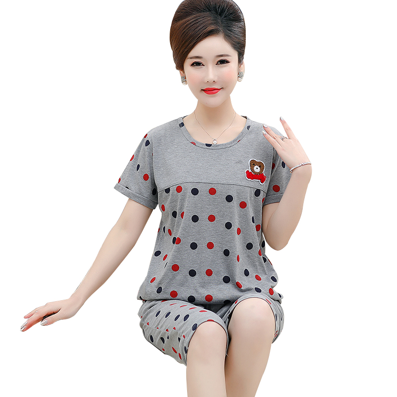 The Tide Card Middle Aged Mother Sleepwear Summer Women Short Sleeve Loose Thin and Elderly Care Summer Seniors Two Sets