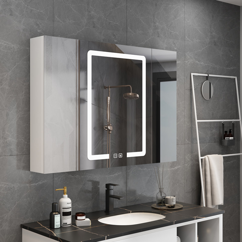 Japan space aluminum smart lens cabinet wall-style cosmetic mirror cabinet with lamp toilet defog mirror cabinet