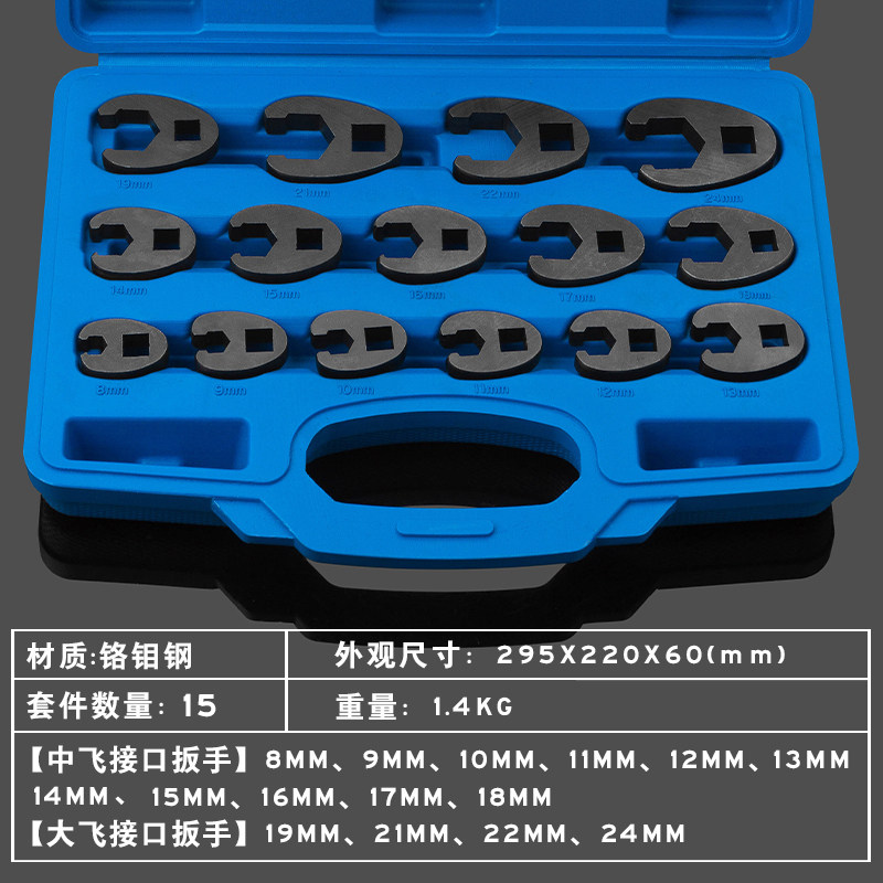 15-piece set of multi-function tubing wrench open-end wrench head U-joint 8-24mm special tools for narrow spaces