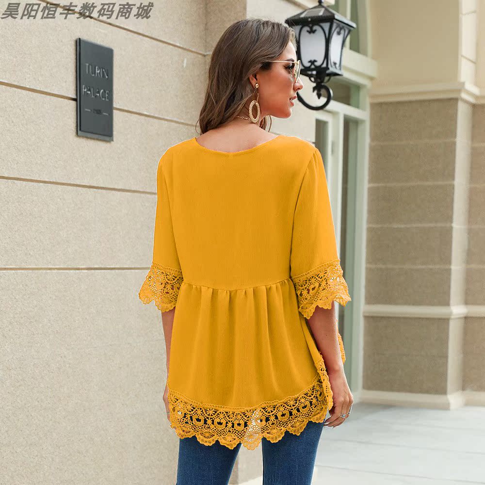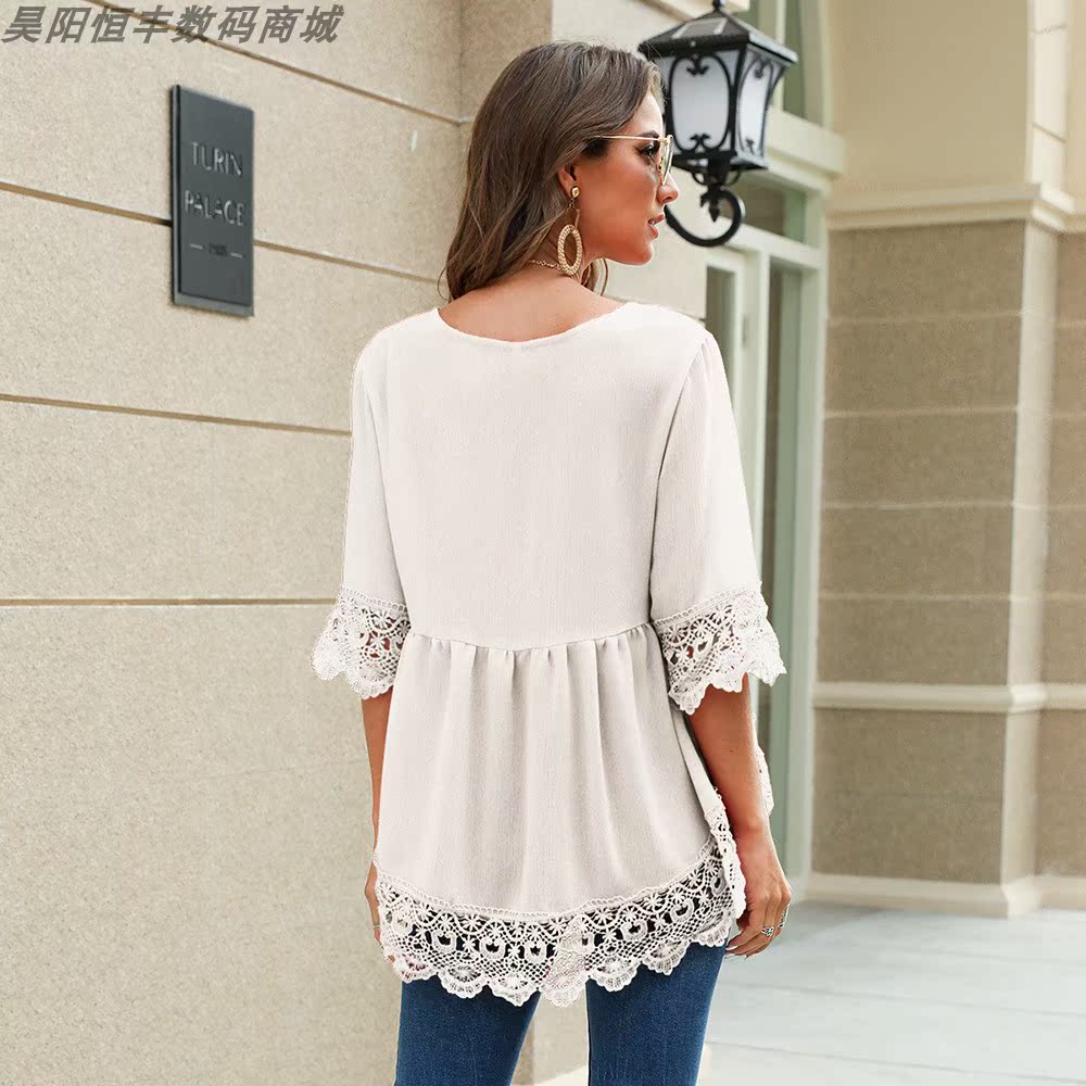 Women summer casual v-neck Chiffon lace shirt blouse tops