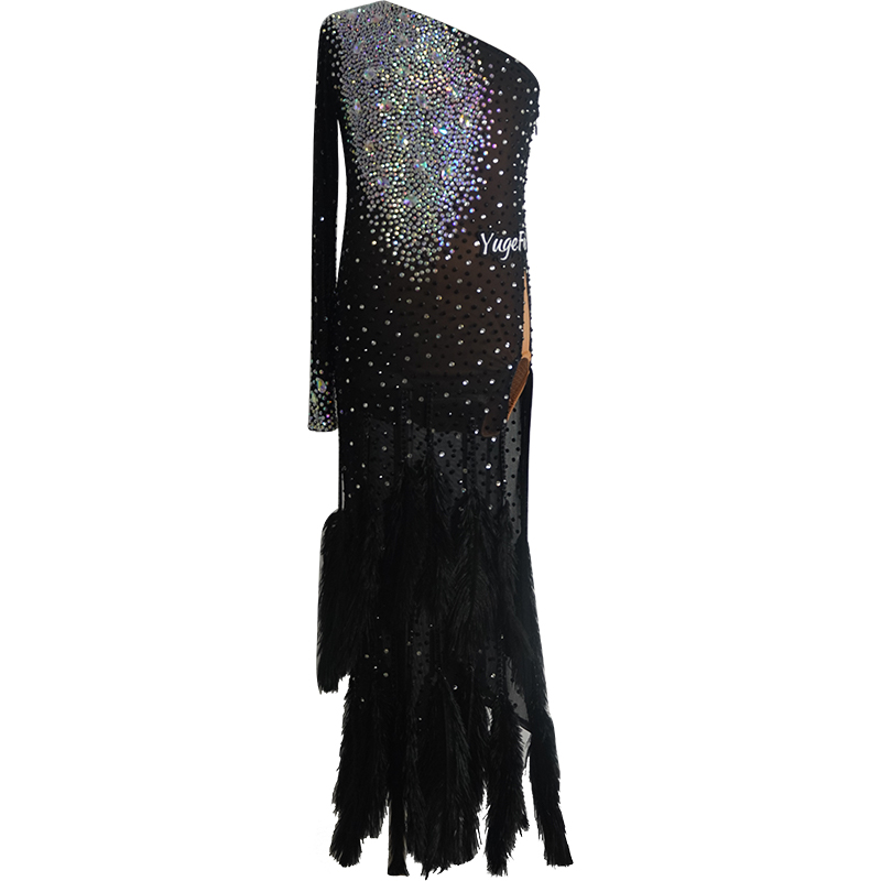 Lugo Fei Latin dance competition dress women's dance skirt shoulder feather skirt diamond dress professional performance clothing