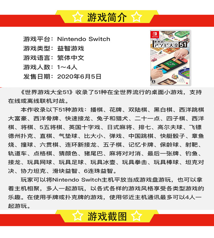 Nintendo Switch NS game cassette World game Daquan 51 clubhouse game Chinese