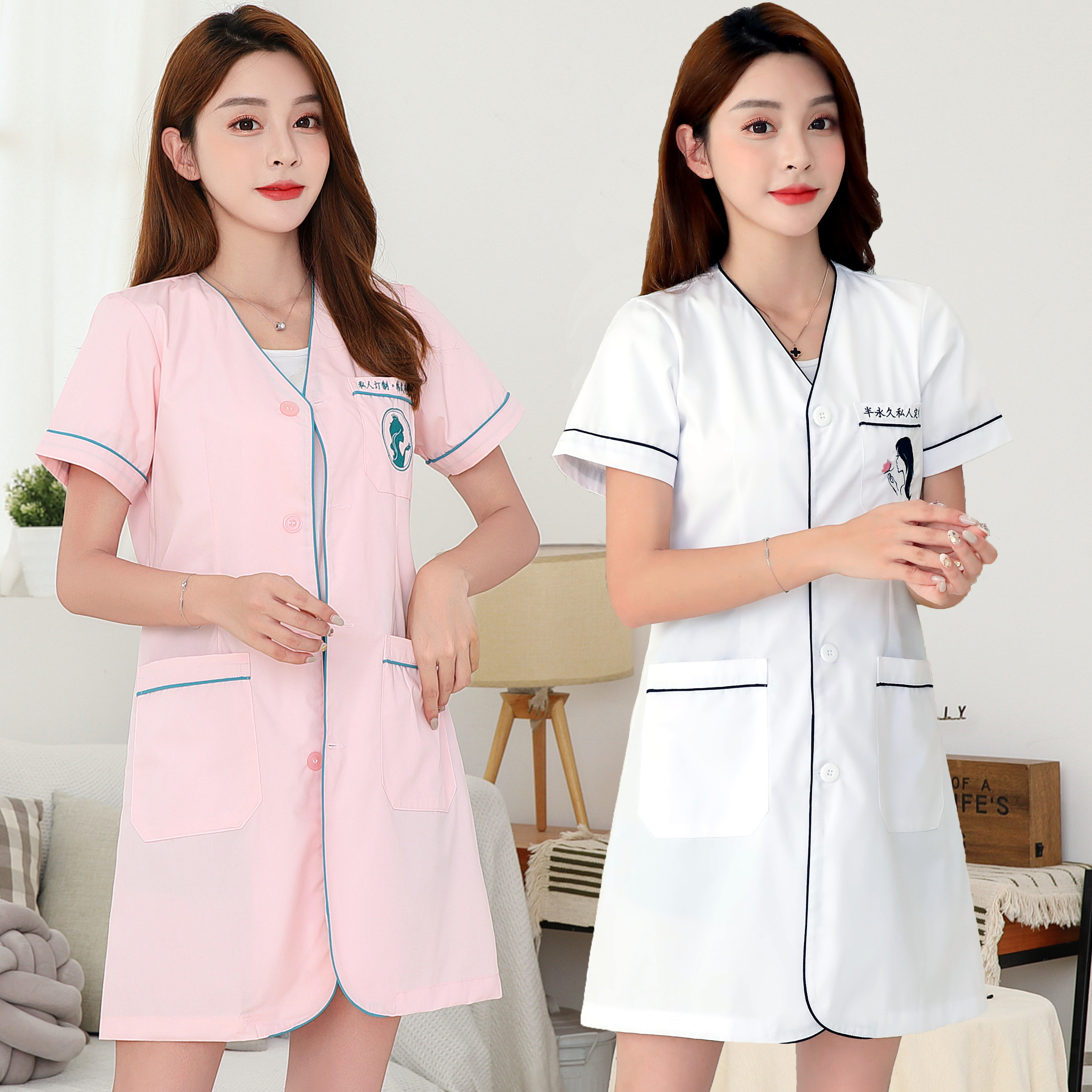 Beauty Salon Beautician workwear woman white coat with short sleeve long sleeve protective clothing embroidered tattooer skin management doctor's clothing