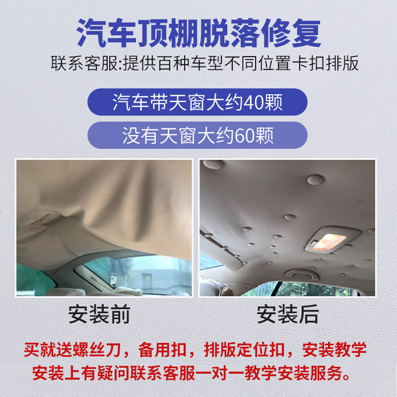 Car roof snap-on inner glue modification cloth self-adhesive shedding repair nail special buckle roof cloth fixed interior