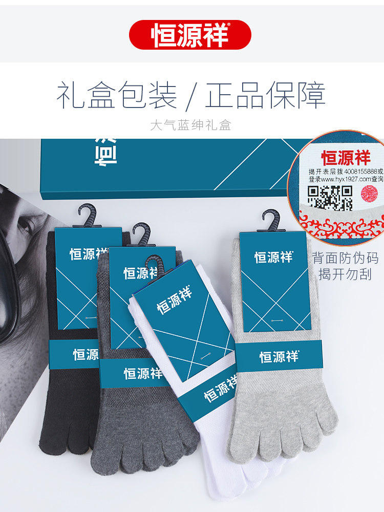 Hengyuan Xiang Five fingers Sox male style pure cotton Summer Deodorant Suction and Breathable Thin summer Men's five-toe full cotton socks