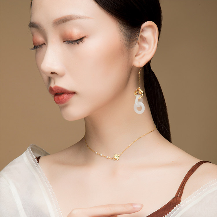 White jade ring earrings for the "Qing Pyeongle" Yulan double ring series