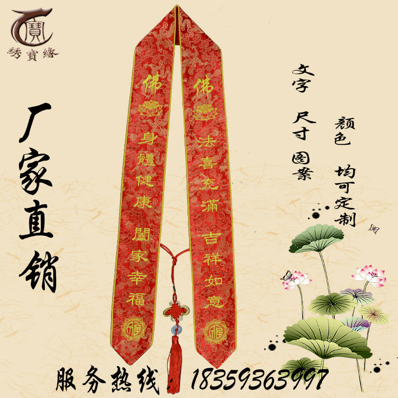 Peaceful blessing belt lotus gift belt hada ribbon monastery puja silk ribbon wishing belt commemorative ribbon color floating - Taobao
