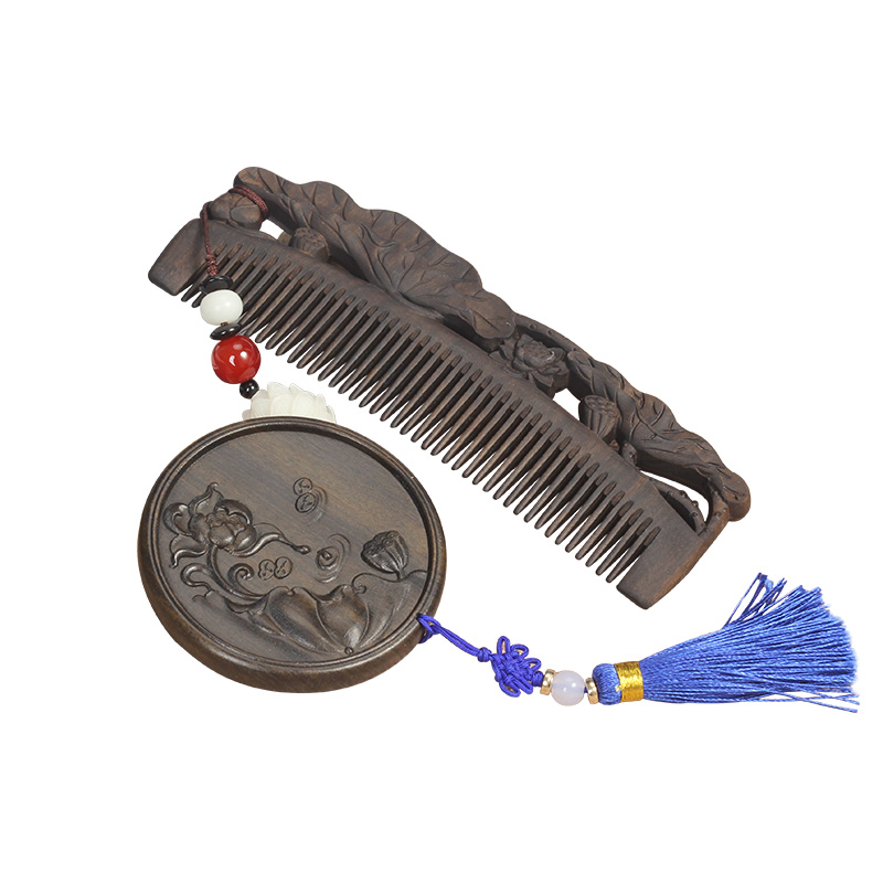 Retro Style Shen Guibao Wooden Comb Massage Comb Anti-Scalp Static Comb Mirror Set Gift Box Packaging Send Girlfriend Comb