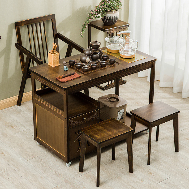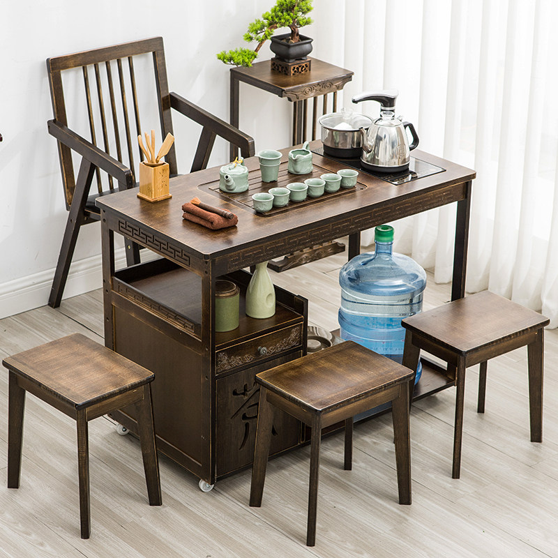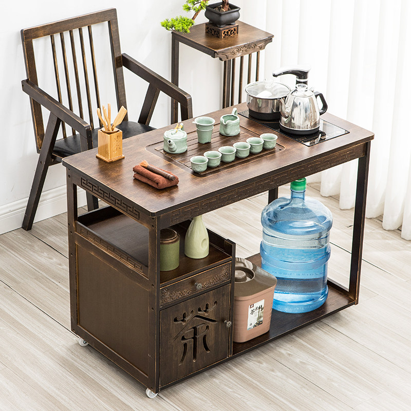 Mobile tea table chair group of family with small tea table utilitum tea table solid wood tea set integrated to burn tea water cabinet