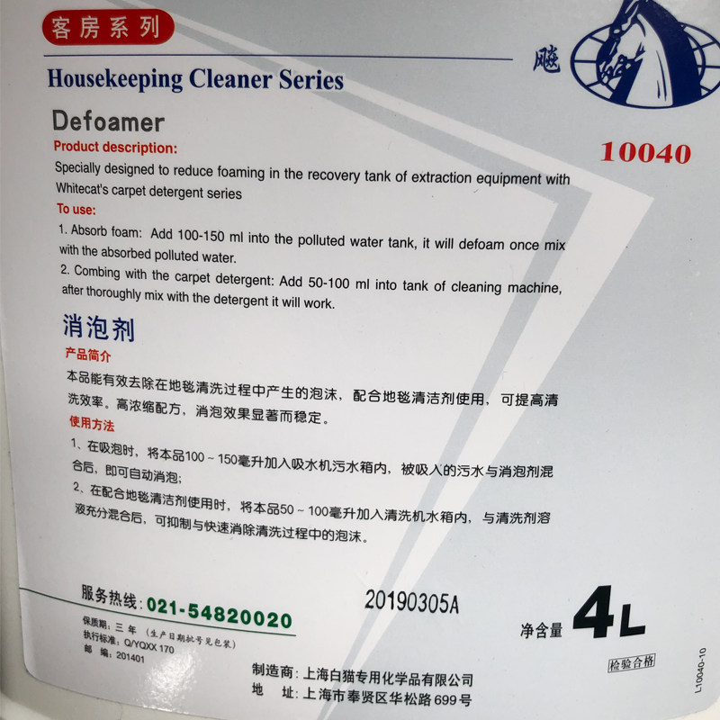 White cat defoamer 4L carpet cleaning to eliminate foaming agent defoaming agent carpet cleaning to eliminate bubbles to foam