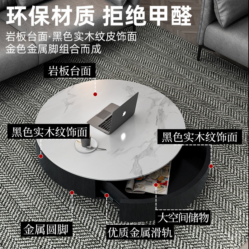 Imported rock slab round coffee table, Nordic luxury, post-modern marble, living room, small apartment, simple Italian coffee table