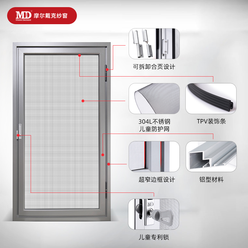 Mordeck king Kong screen window with lock casement window screen window Child protective net High permeability stainless steel screen window anti-cat