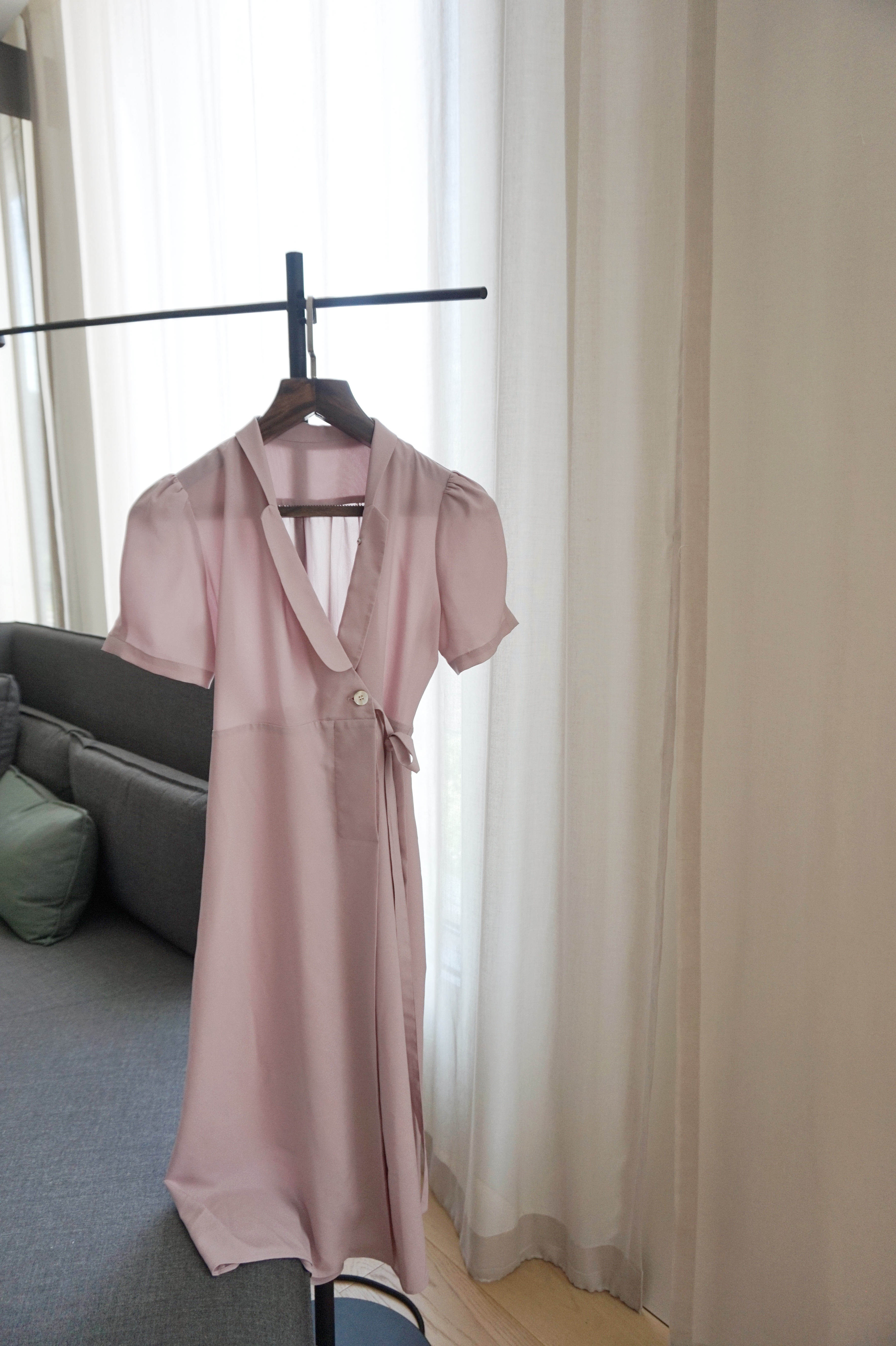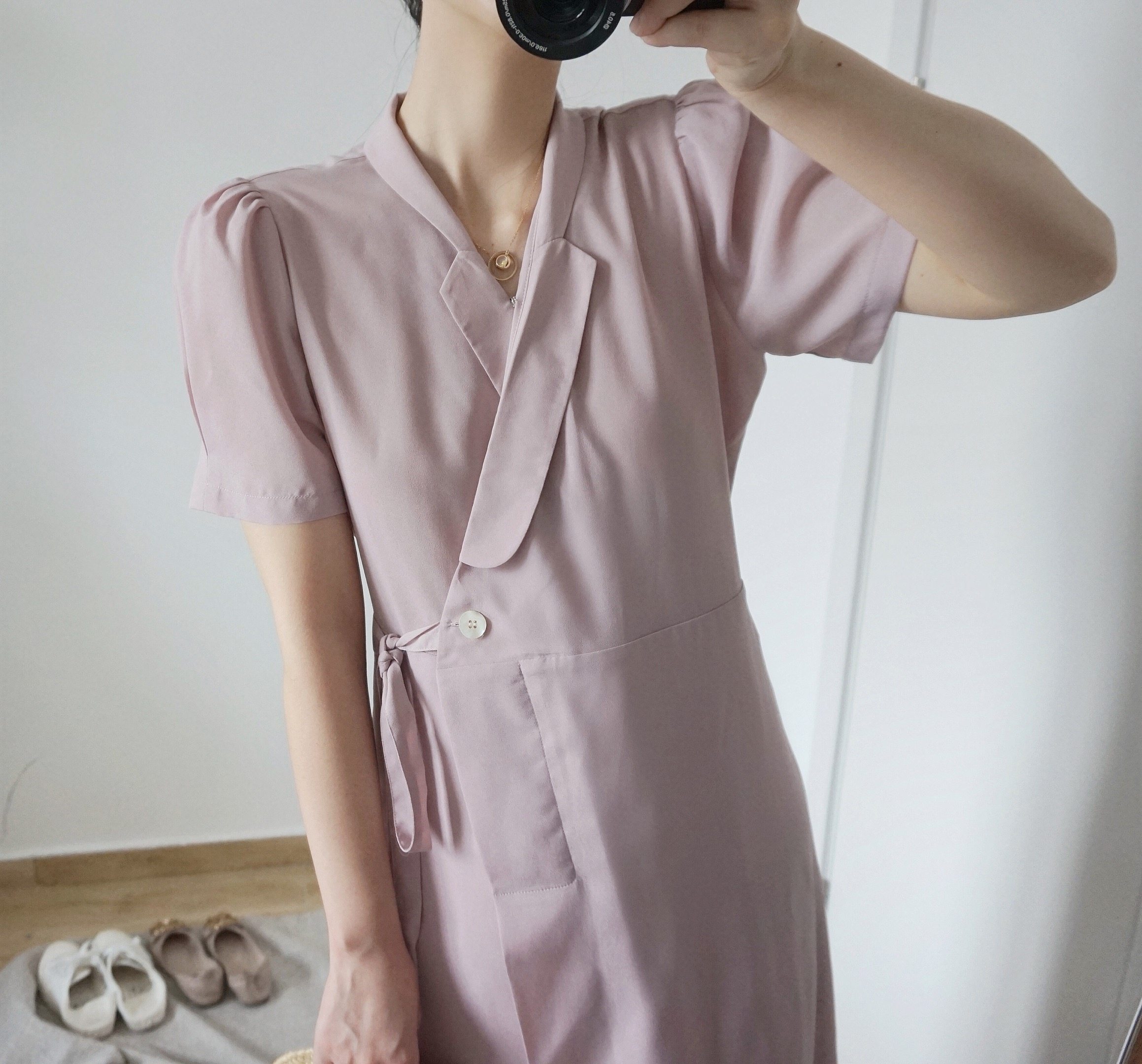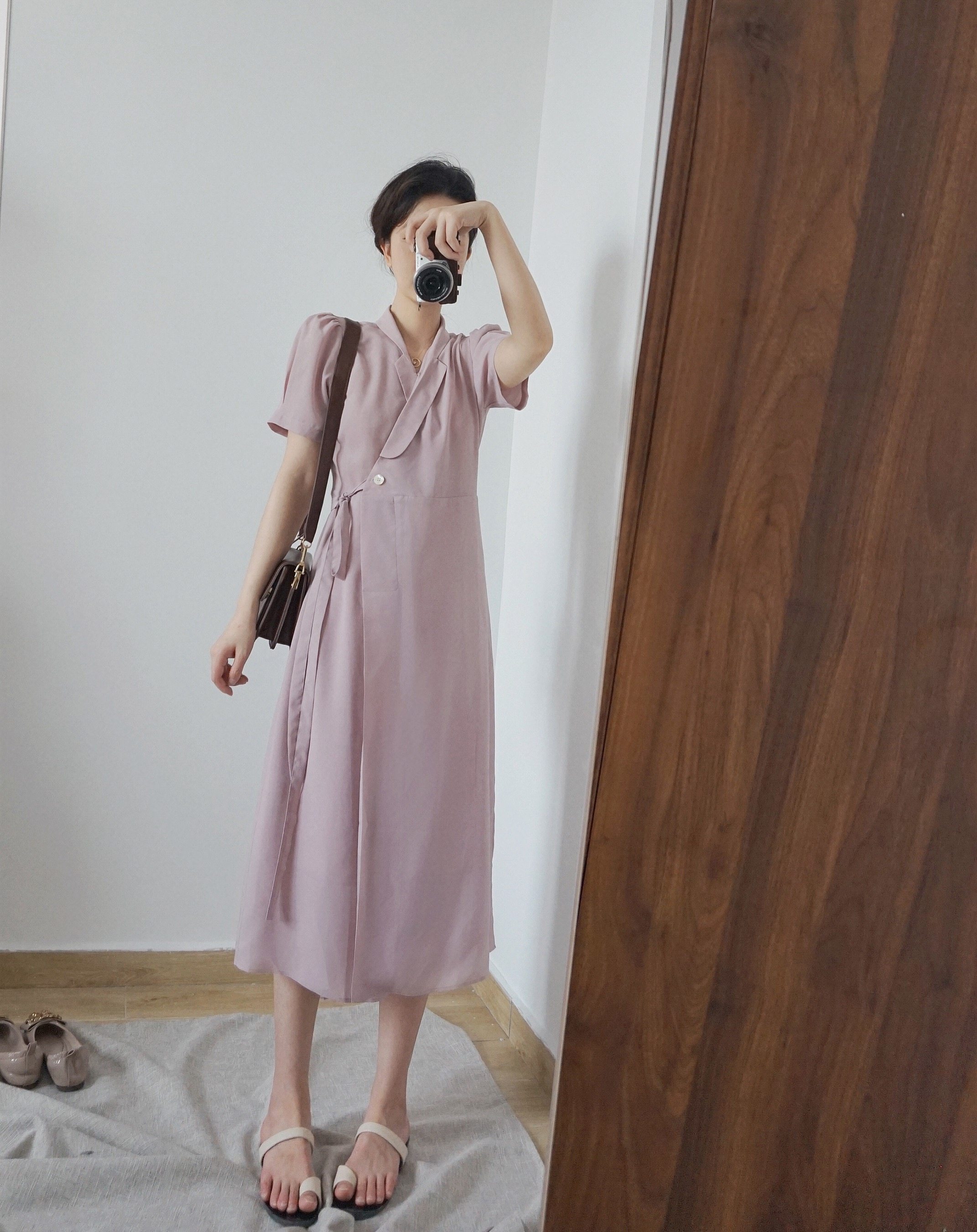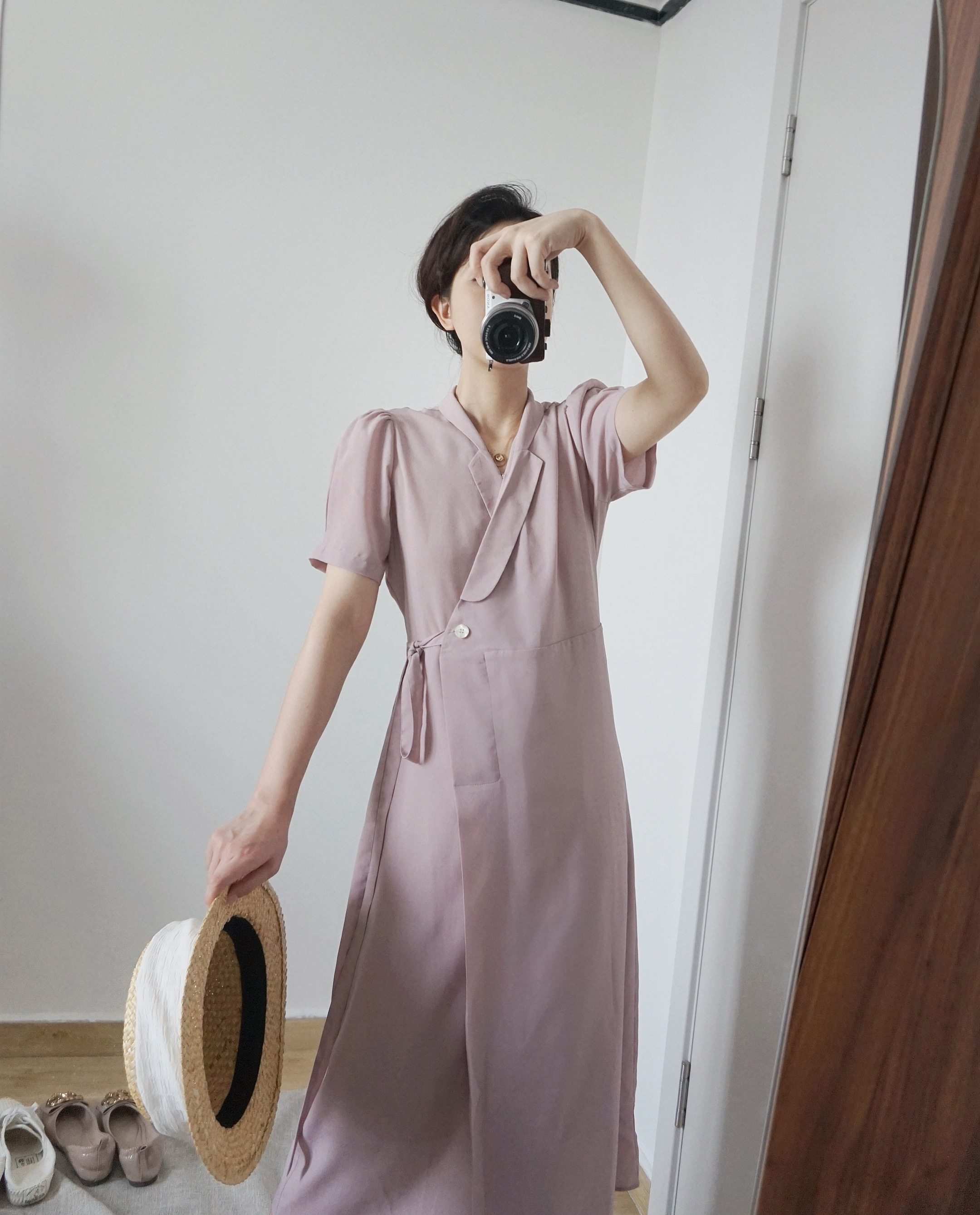 The Rice Squad conspicoed Lin Yam Road Ocean Mount Morandi Jue Beauty Western Dress Collar's Long Edition Light Purple Balloon Skirt