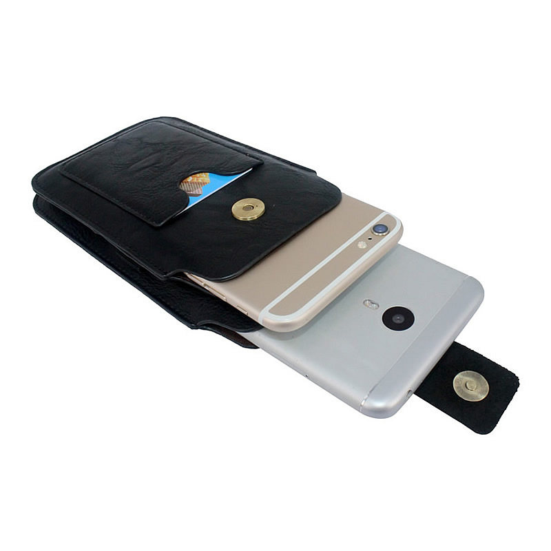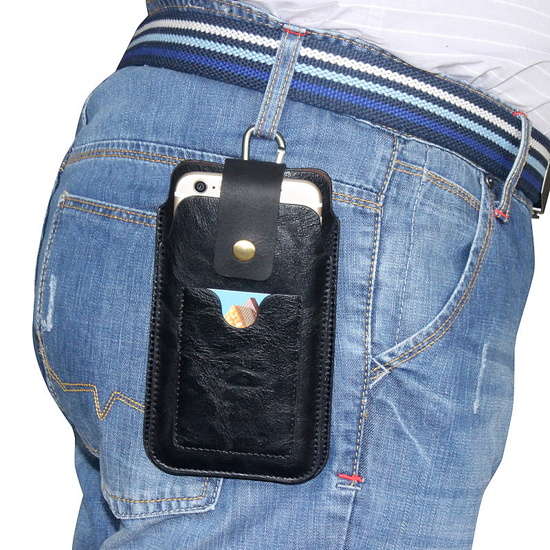 Double layer put 2 mobile phone hung out of pocket wearing leather belt male driver's license card bag leather cover retro vertical light and thin tide