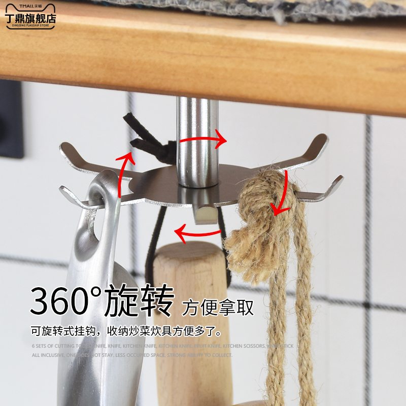 Top-mounted kitchen stainless steel rotary hook punch-free spatula spoon kitchenware shelf Wall-mounted integral cabinet hanging