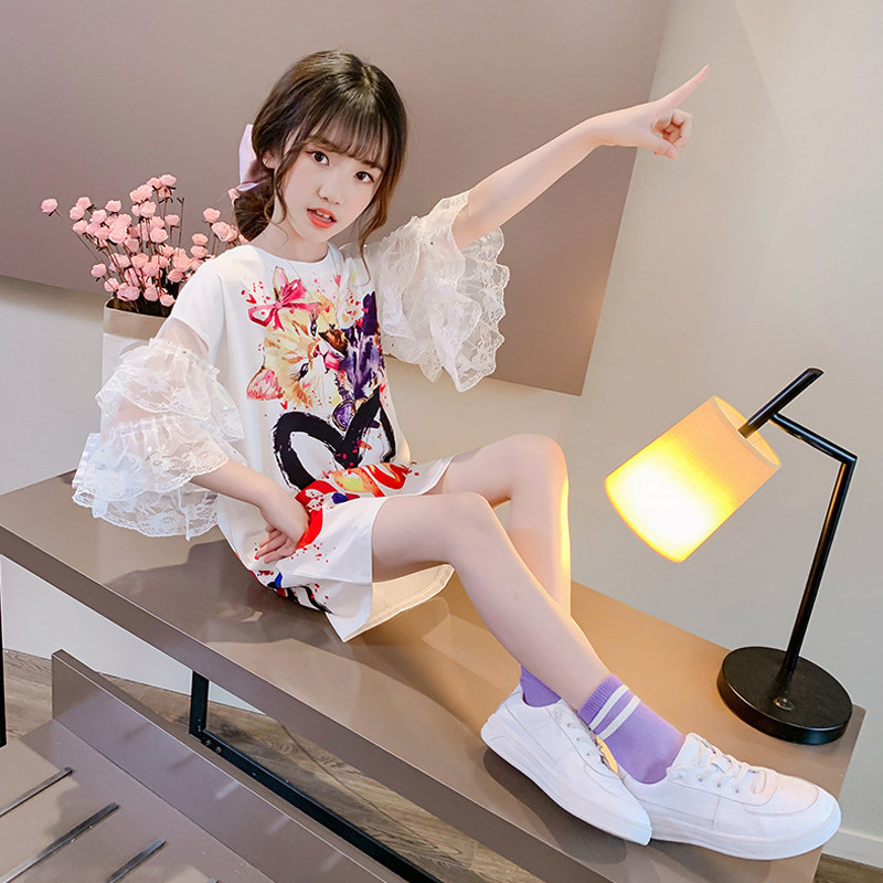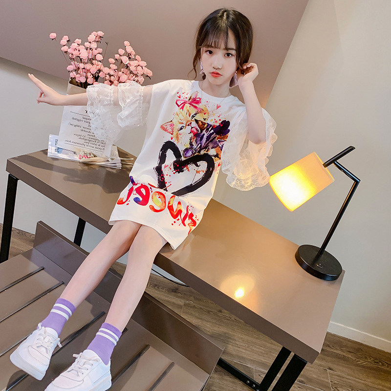 Korean girls summer dress Western style dress 2022 new middle-aged children's loose children's clothing long version short-sleeved t-shirt skirt