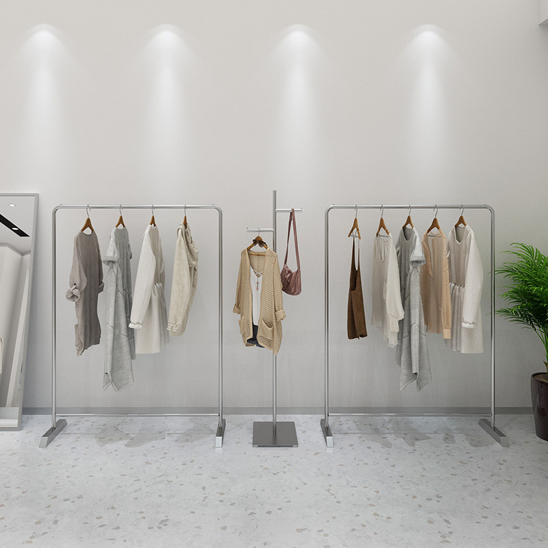 Clothing store display rack floor-standing hanger display rack women's clothes rack new silver stainless steel shelf