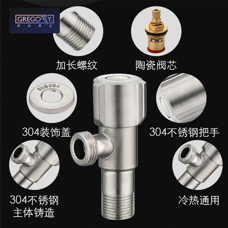 Ge Li Gaoli bathroom stainless steel triangle valve thickened 4-point water valve switch household hot and cold universal explosion-proof angle valve