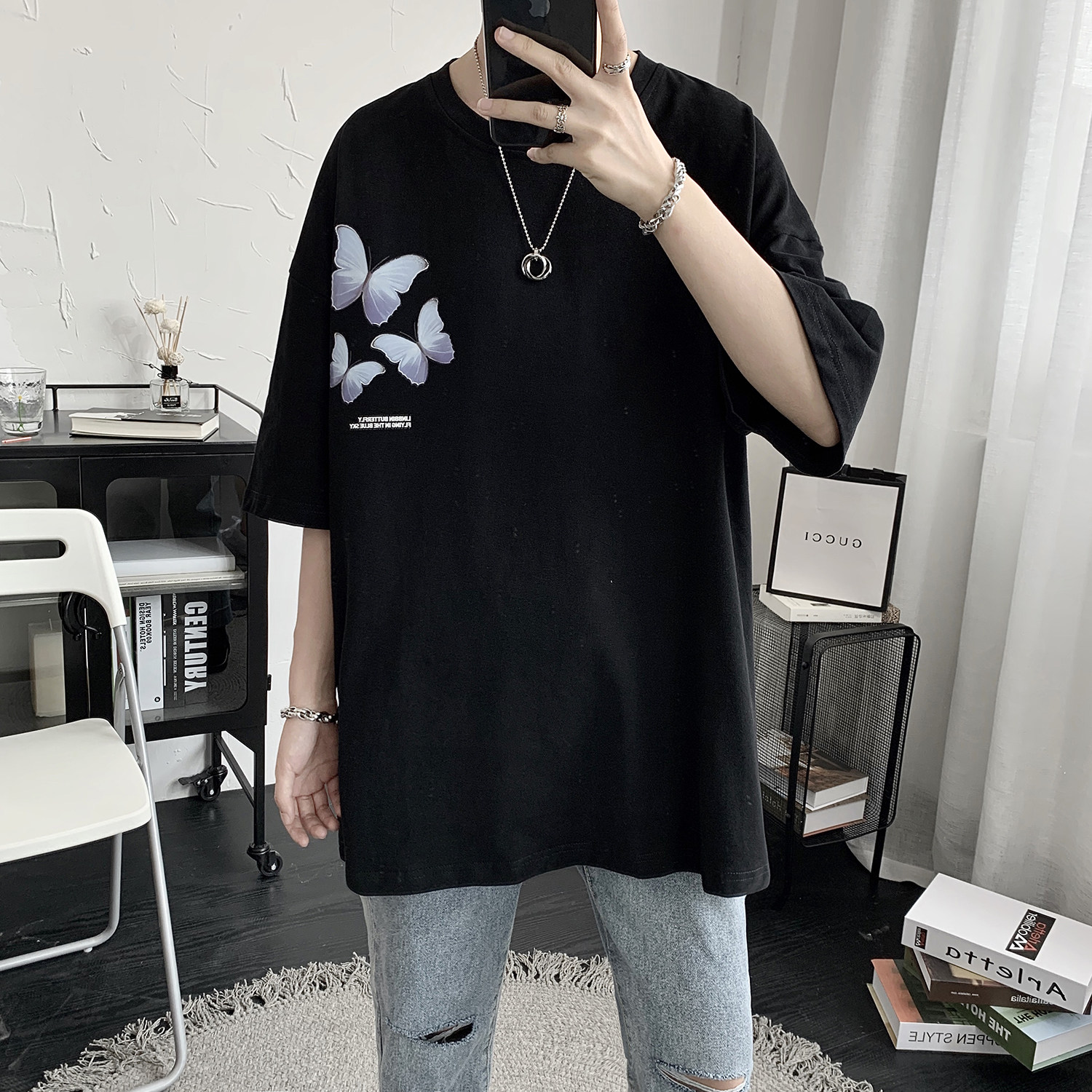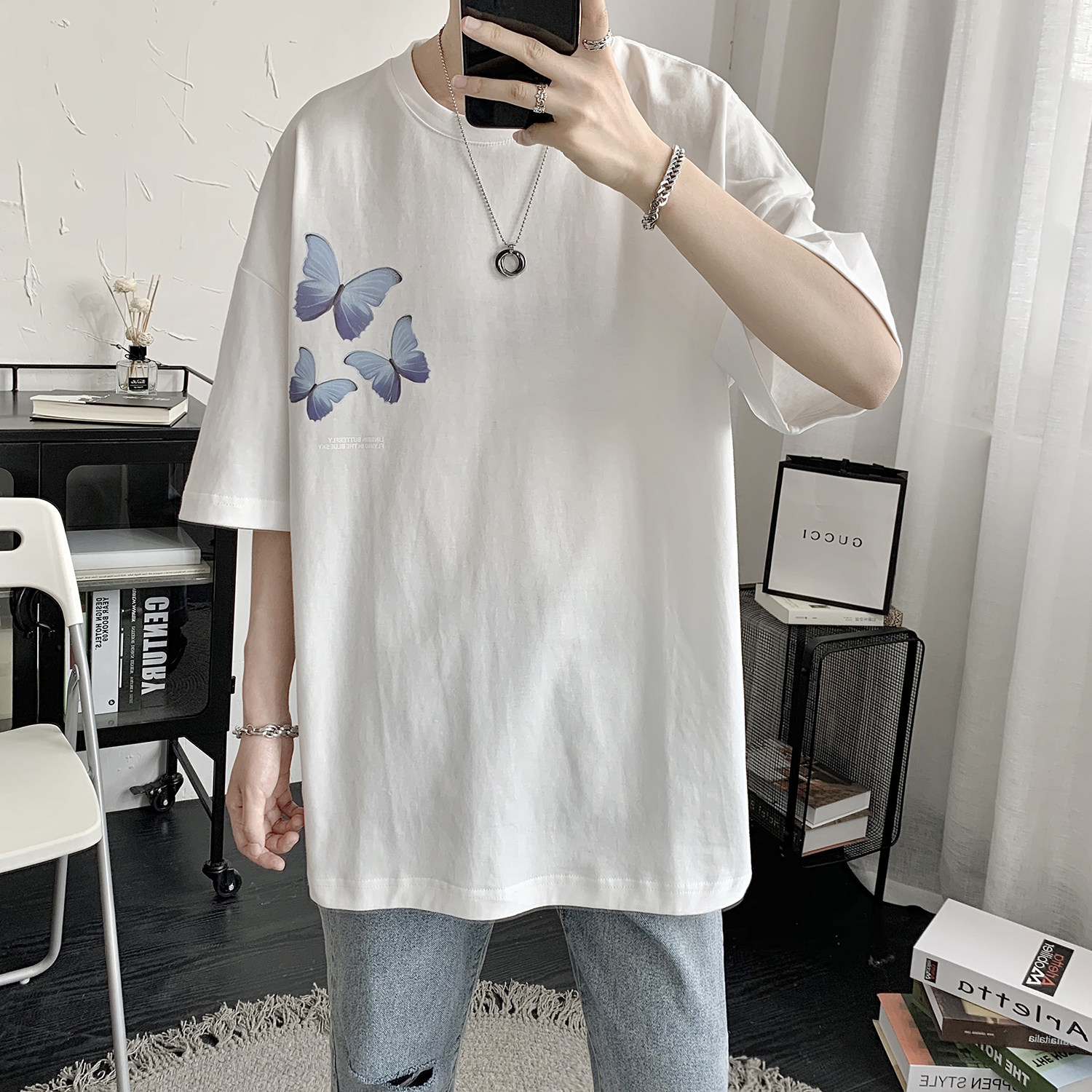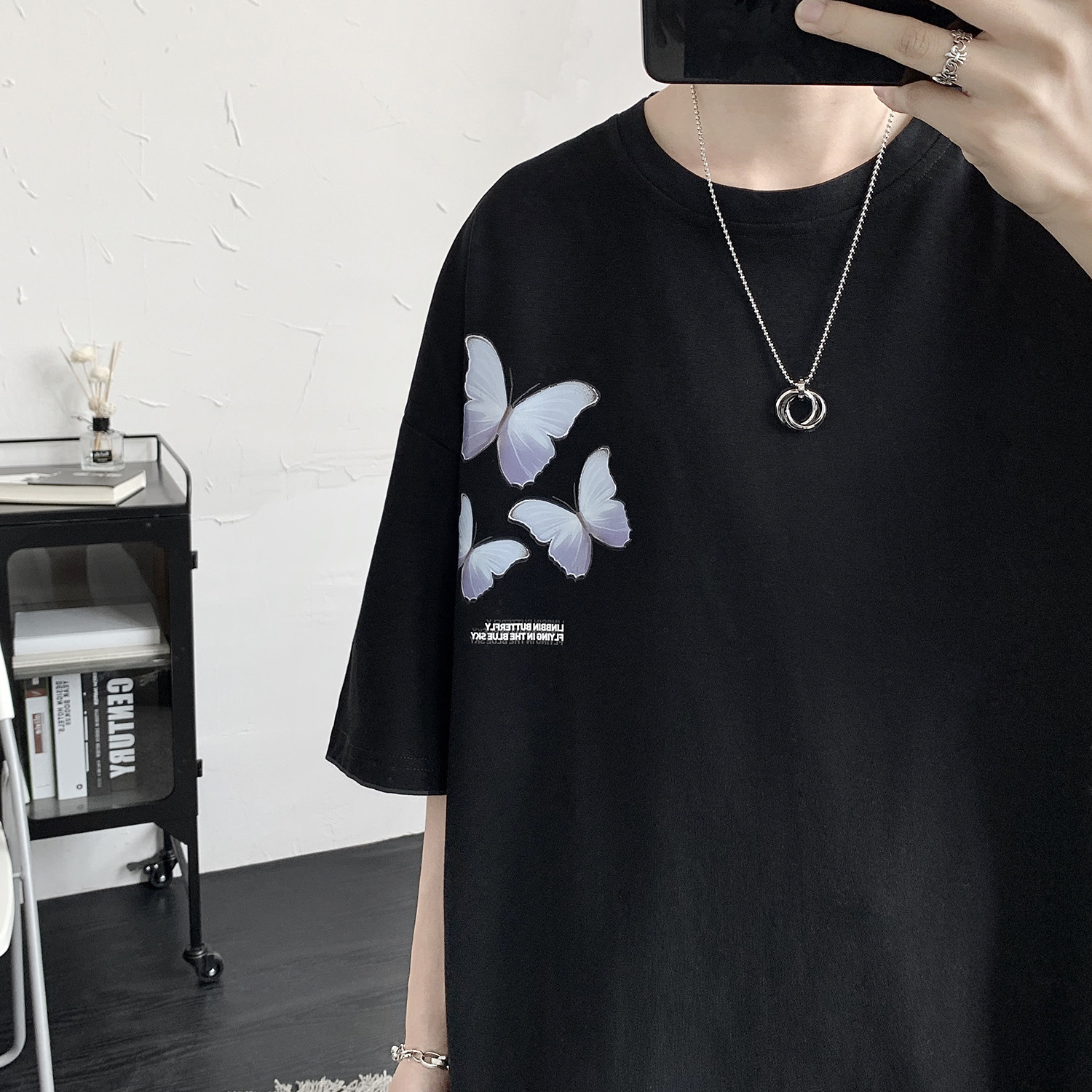 2021 new summer butterfly print lovers short sleeve t-shirt male tide card trend easing ins 100 lap t-shirt clothing