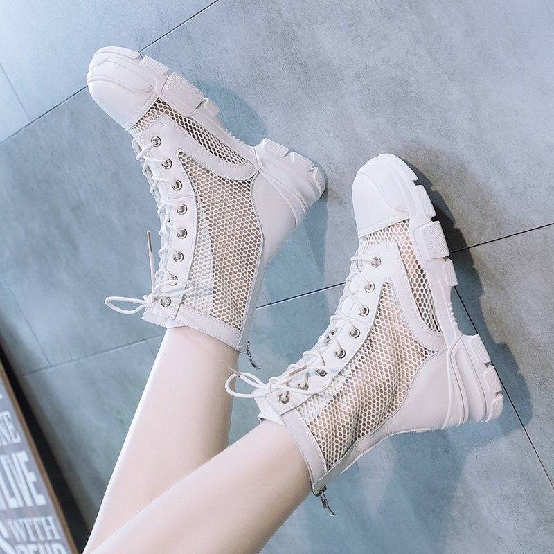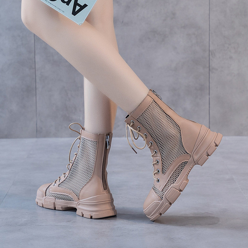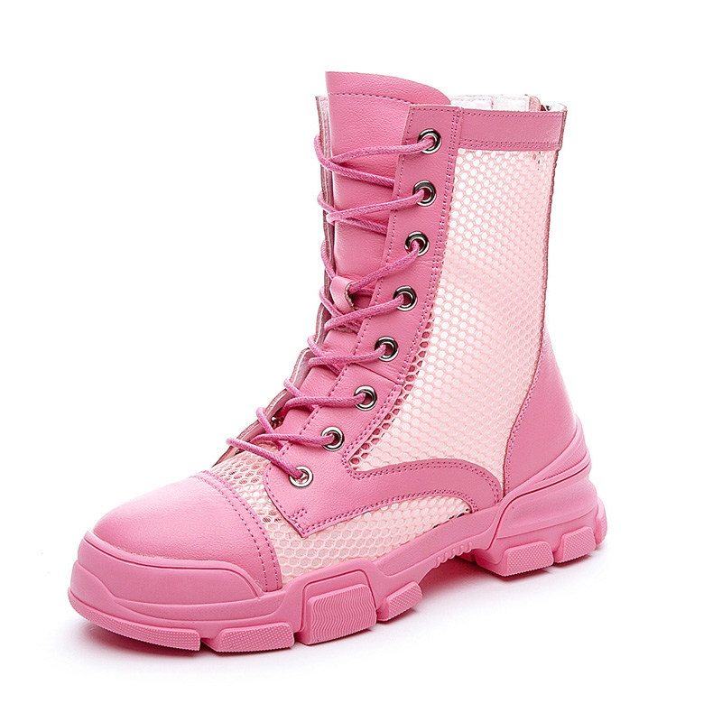 Summer mesh boots women's 2022 new summer thin section breathable leather pink Martin boots hollow short boots mesh sandals