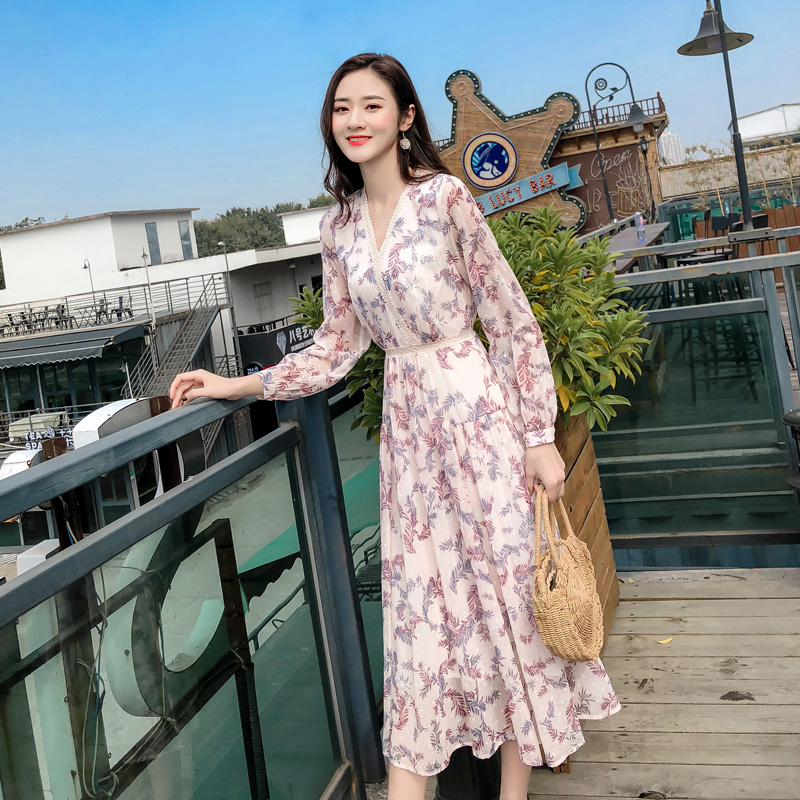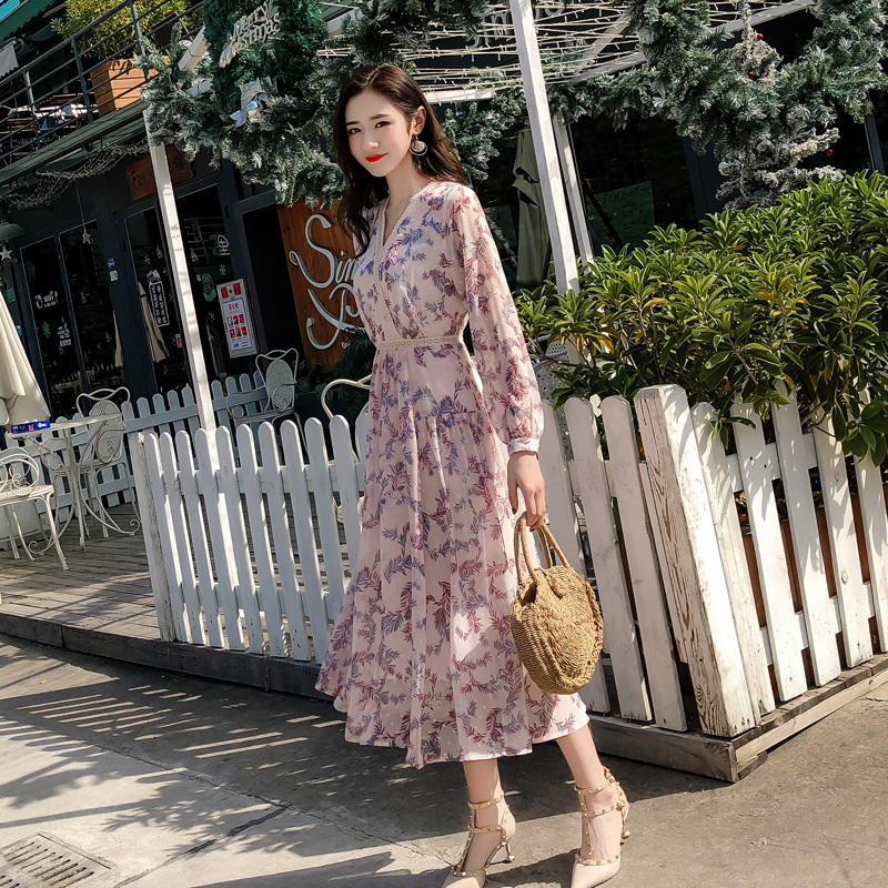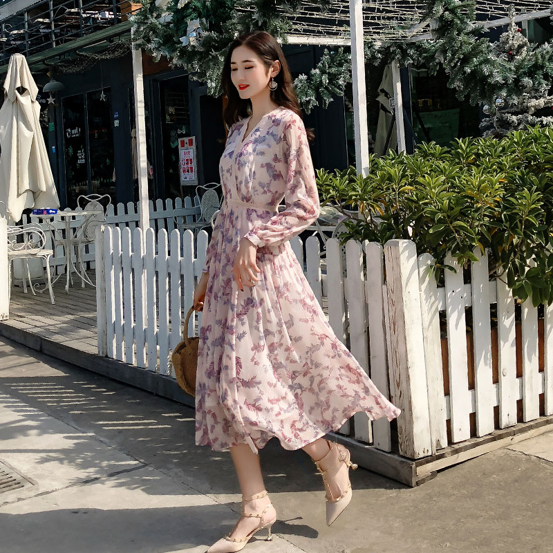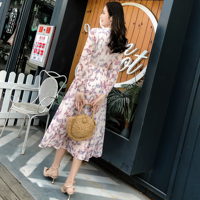 Hyuna style skirt ins Super fairy oil painting skirt Long skirt French thin dress female spring and autumn small fresh temperament