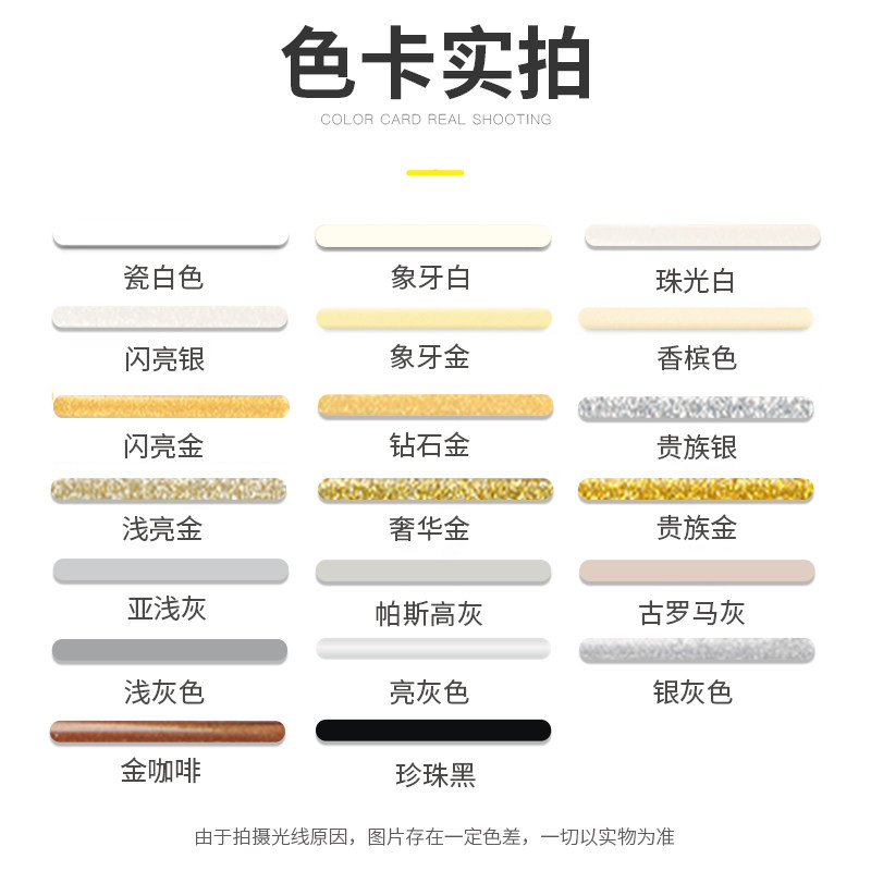 Porcelain White Ivory White Pearlescent White Shiny Silver Ivory Gold Champagne Shiny Gold Diamond Gold Noble Silver Light Shine Gold Luxury Gold Noble Gold Sublight Grey Pascal Grey Ancient Rome