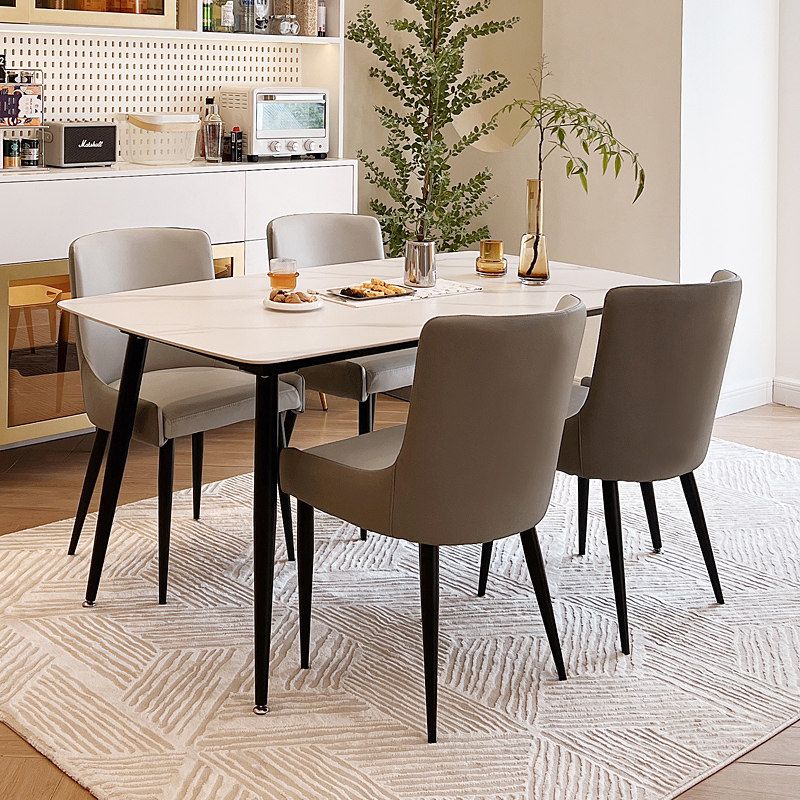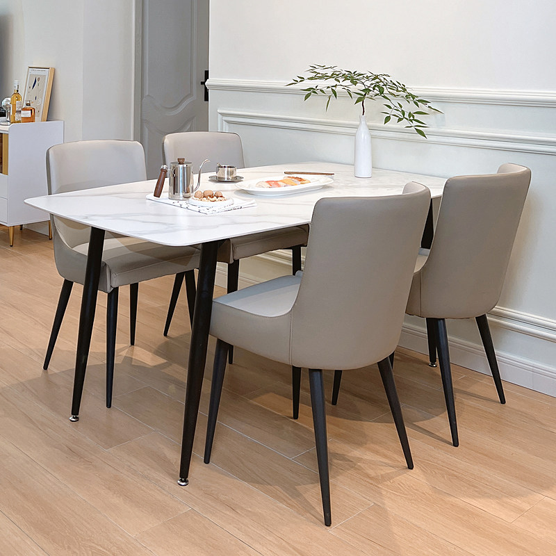 Nordic Marble Dining Table And Chairs Combine Small Family Type Extremely Minimalist Light Luxury Rectangular Mesh Red Home Rock Board Living Room