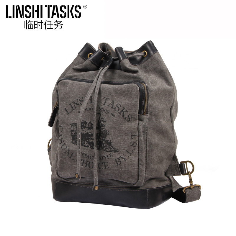 New Original Design Backpack Men's Fashion Screen Printing Shoulder Bag Canvas Bag Casual Trendy Bag Retro Travel Bucket Bag